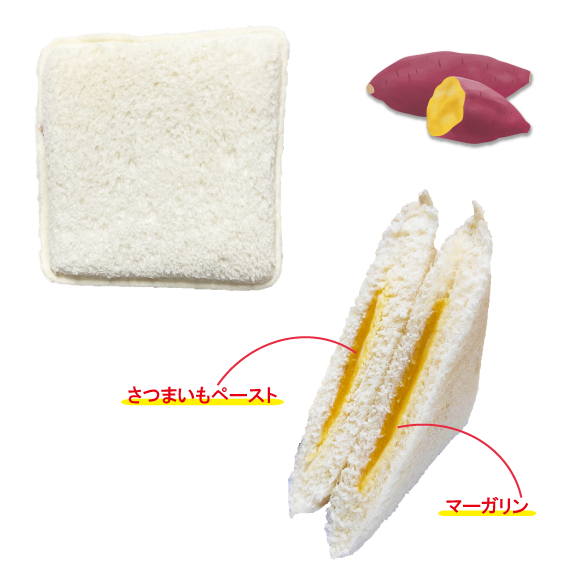 ポケットランチ専用食パンに、なめらかで上品な甘さのシルクスイートを使用したさつまいもペーストとマーガリンをサンドしました。