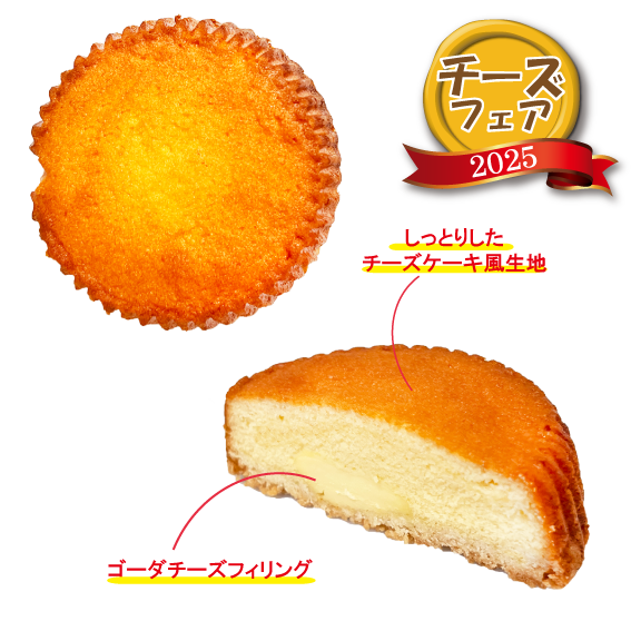 しっとりしたチーズケーキ風生地に、ゴーダチーズフィリングを入れて焼き上げました。