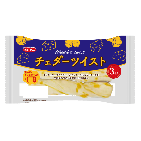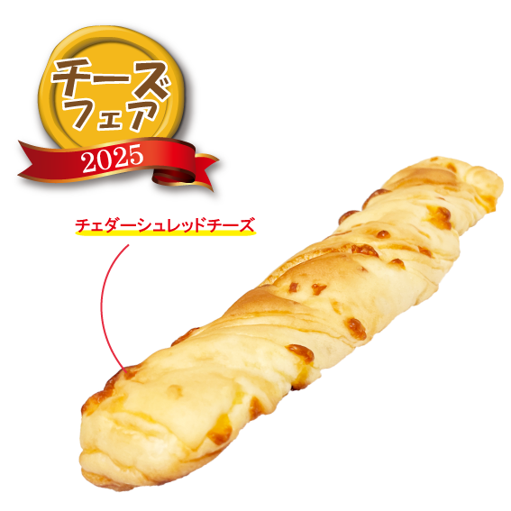チェダーチーズ入りシートとチェダーシュレッドチーズを、生地に折り込んで焼き上げました。