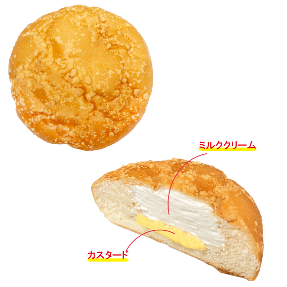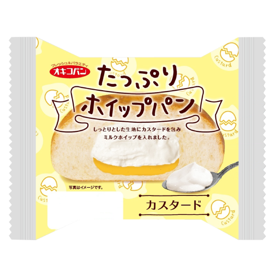 しっとりとした生地にカスタードを包み、ミルクホイップを入れました。