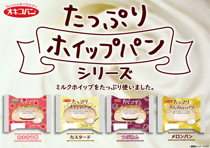 オキコから甘党・ホイップ好きにはたまらない、「たっぷりホイップパンシリーズ」が新登場!