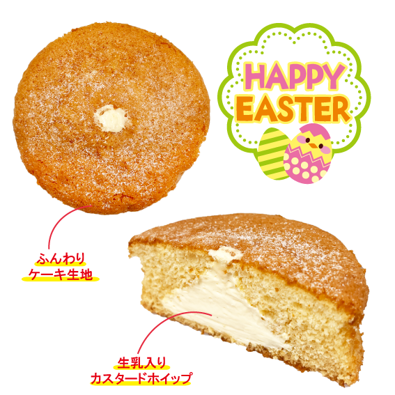 たまごが入ったふんわりとしたケーキ生地に生乳とたまごを使用したなめらかなカスタードクリームとホイップクリームを混ぜ、粉糖で仕上げました。
